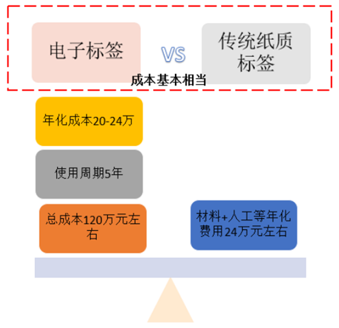 目前 電子 標(biāo)簽 與傳統(tǒng)紙質(zhì) 標(biāo)簽 年化成本已基本相當(dāng)