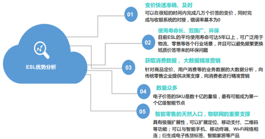 電子標(biāo)簽 優(yōu)勢(shì)漸顯 。智能電子價(jià)格標(biāo)簽是一種可替代傳統(tǒng)紙質(zhì)價(jià)格標(biāo)簽的電子顯示裝置。每一個(gè)電子價(jià)格標(biāo)簽通過有線或者無(wú)線網(wǎng)絡(luò)與商場(chǎng)計(jì)算機(jī)數(shù)據(jù)庫(kù)相連,并將最新的商品價(jià)格通過電子價(jià)格標(biāo)簽上的屏顯示出來。電子標(biāo)簽具備變價(jià)快速準(zhǔn)確、及時(shí);使用壽命長(zhǎng)、范圍廣、環(huán)保;獲取消費(fèi)數(shù)據(jù),大數(shù)據(jù)精準(zhǔn)營(yíng)銷;智能零售的天然入口等五大優(yōu)勢(shì),有望成為線下零售商轉(zhuǎn)型 O2O 的重要抓手。
