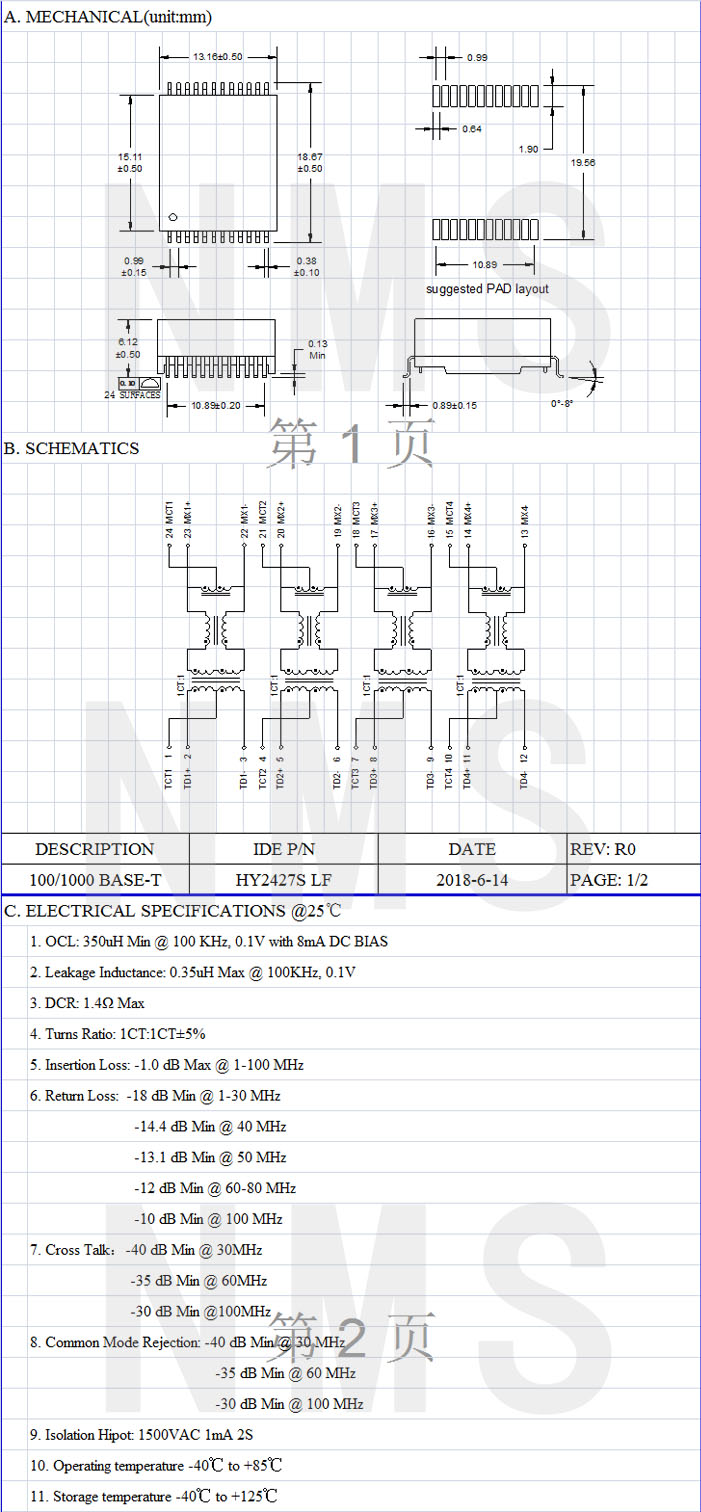產品備注:SMD HY2427S LF產品系列